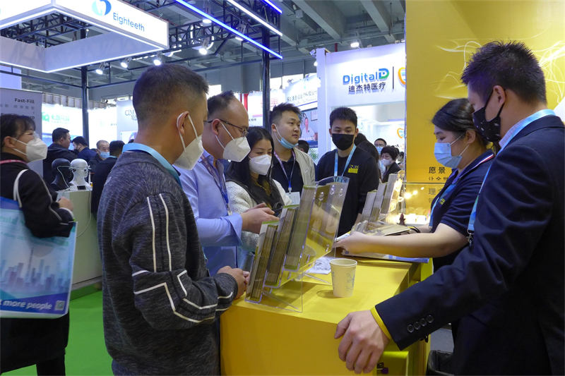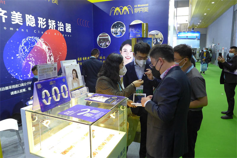 此次展会,定远国 际集团向大家展示了做工精美技术精湛的义齿样品,以及公司自主研发的专 利产品:手机摄影支架和单反支架,贴面酸蚀处理盒,粘接笔等一系列优 质产品。同时,易齐美和金艾迪也展出了各自的优 质产品:隐形矫治器和基台、种植体等等。